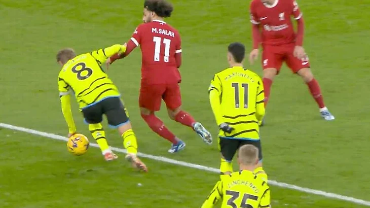 В этом эпизоде явно прослеживается сходство с игрой рукой Мартина Эдегора из «Арсенала» в матче против «Ливерпуля» в декабре 2023 года. Полузащитник находился в собственной штрафной под давлением Мохамеда Салаха, и его рука выбила мяч. Судья на поле решил, что нарушения нет, и VAR поддержал это мнение, поскольку Эдегор якобы просто пытался сохранить равновесие, а игра рукой была признана случайной. Позже судейский комитет Премьер-лиги признал, что пенальти всё же должен был быть назначен.