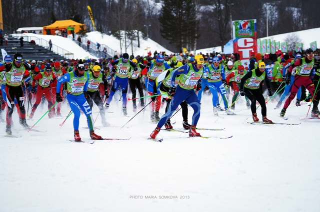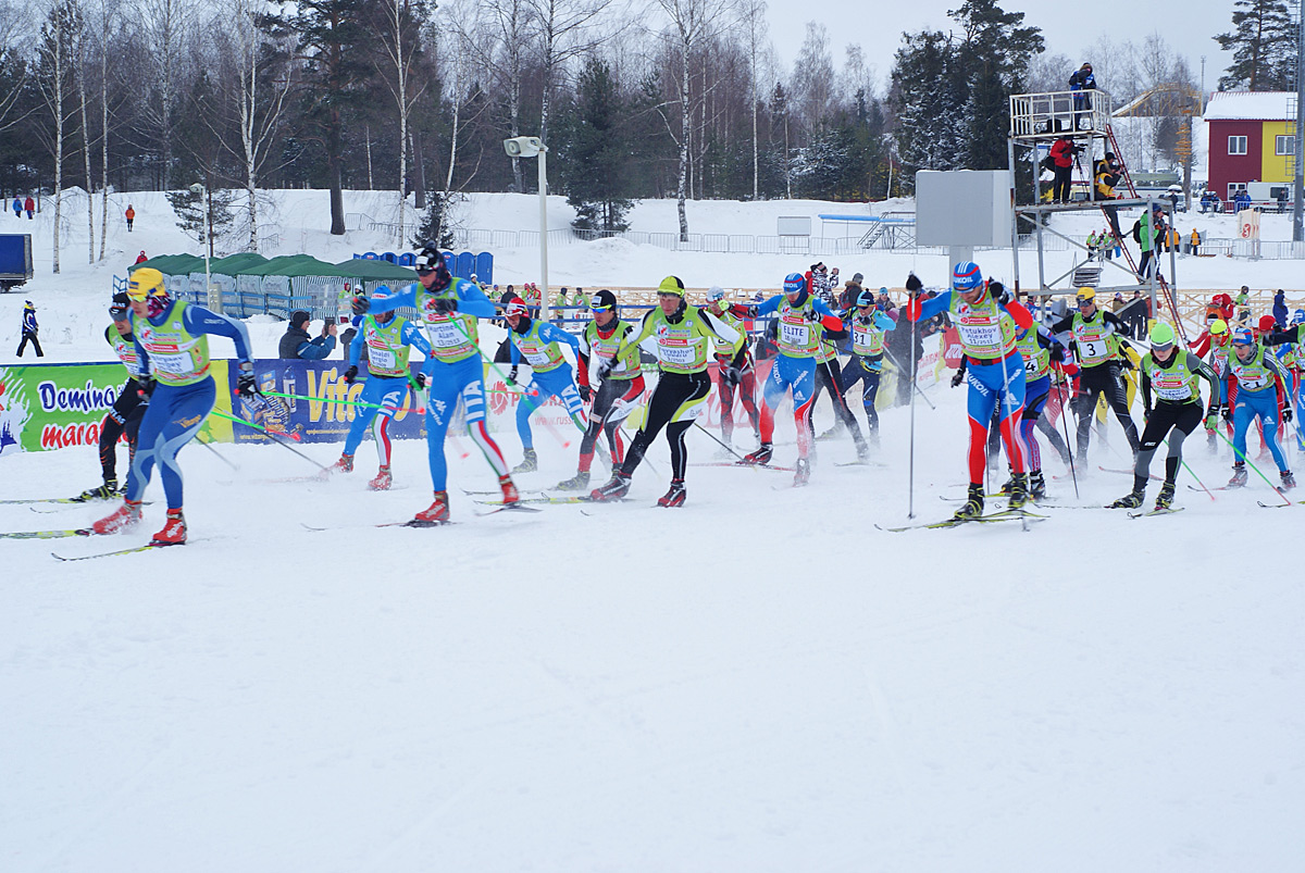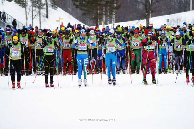 Вернулся я уже только за пару минут до старта, когда уже вся толпа стояла на лыжах, а мои соседи по стартовой линии активно интересовались, чьи это лежат сиротливо брошенные лыжи. Успокоив всех, что хозяин лыж пришёл и обувшись в них, я вместе со всеми начал ждать старта! Передо мной был один ряд спортсменов, ещё один ряд российских сборников и иностранцев и 50 км дистанции. И вот раздался выстрел стартового пистолета.