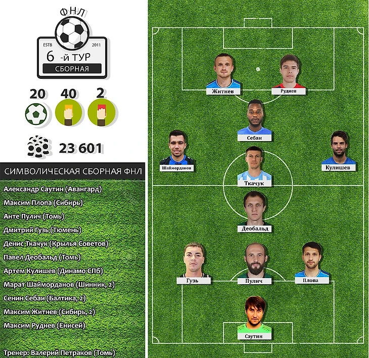1. Кирилл Сараев. В чемпионатах Первой лиги 8 матчей, 1 гол.