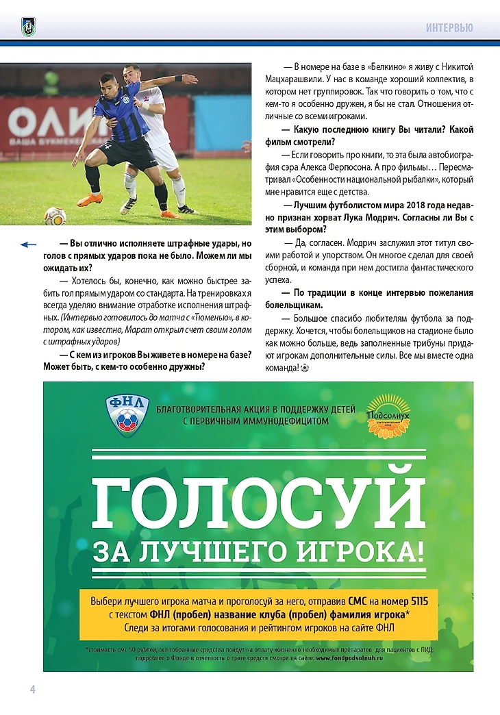 В программке перед игрой с «Тамбовом» появилось его большое интервью.