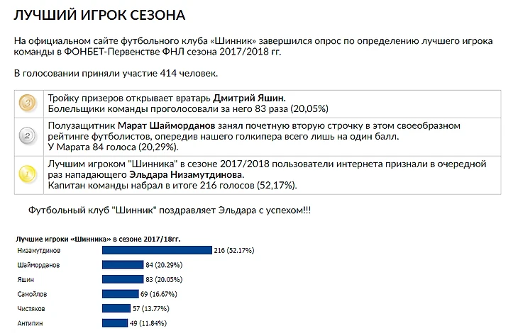 По итогам сезона «Шинник» снова стал восьмым, а Марат занял 2-е место в голосовании за лучшего игрока клуба среди болельщиков.