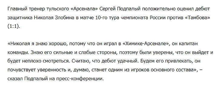 Через месяц Подпалого во главе «канониров» сменит Парфенов. И ни он, ни позже Миодраг Божович так и не рассмотрят в Злобине потенциала для участия в играх основной команды. Как и принявший туляков летом 2022 года Олег Кононов не увидит в Николае необходимого юнита для покорения вершин Первой лиги.
