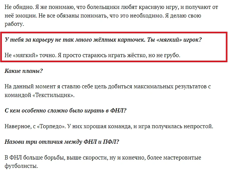 Интересно, что перед началом сезона ивановский журналист уточняет у полузащитника - «мягкий» ли он игрок. Свой ответ Шведюк ярко иллюстрирует статистикой.