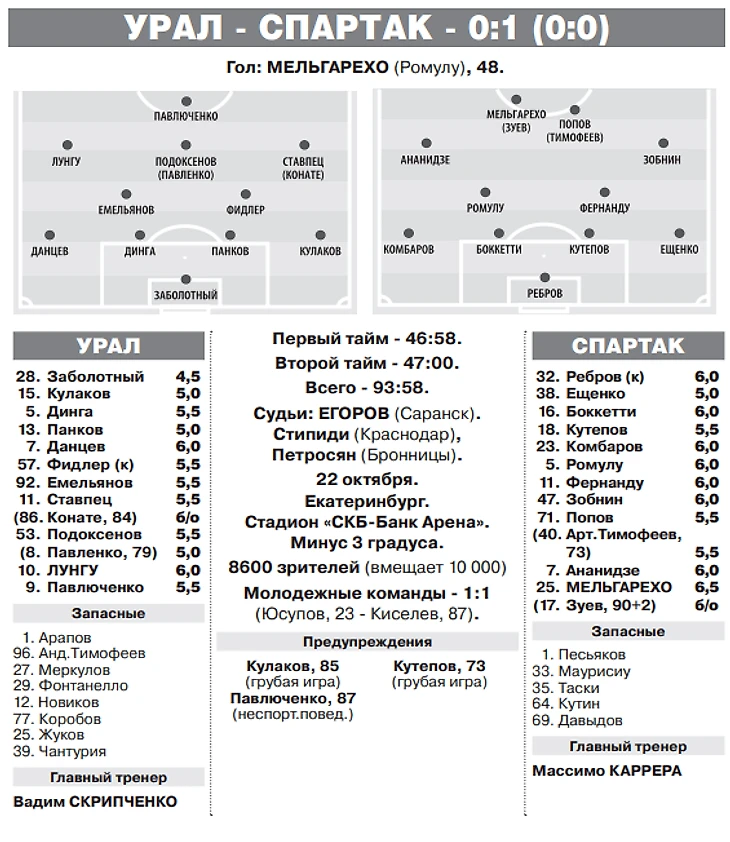 Звездный час: 22.10.2016 «Урал» – «Спартак» 0:1.