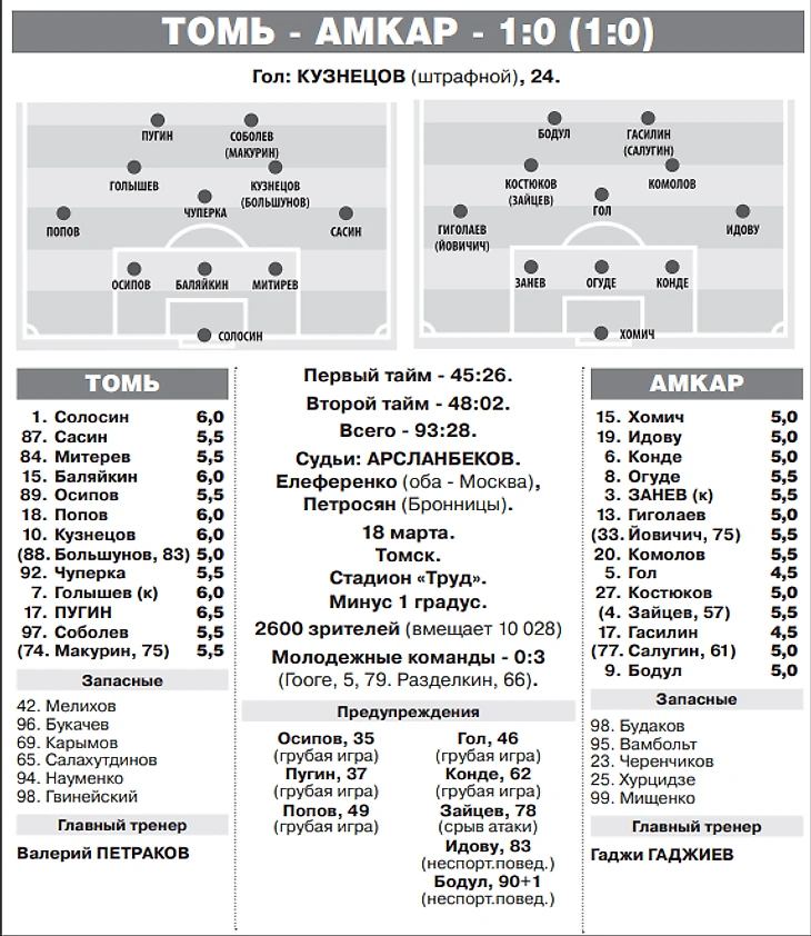 Звездный час: 18.03.2017 «Томь» – «Амкар» 1:0.