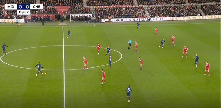 По первому тайму, плохо смотрелись наши фланги в лице Мало Гюсто и Левая Колвилла. Игроки Боро просто не замечали их присутствие и спокойно продвигали свои атаки. Нони Мадуэке был снова плох. Очень много потерь и бестолкового дриблинга со стороны англичанина. А Стерлинга просто «выключили» в первом тайме. Как-то так.