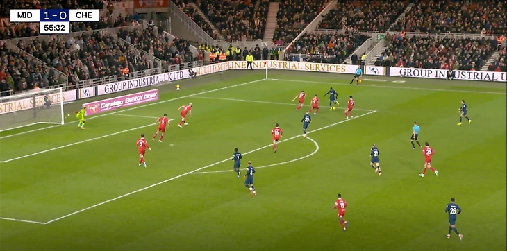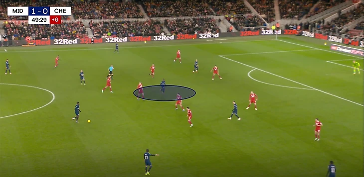 Мидлсбро сел в низкий блок и Челси стало еще труднее двигать мяч до штрафной соперника. Видно, что команда сделала результат и достойно его обороняла. А для Челси все это было удручающе – как только мяч доходил до игрока «синих» его сразу встречали 2-3 игрока Боро и дальше ничего не выходило.
