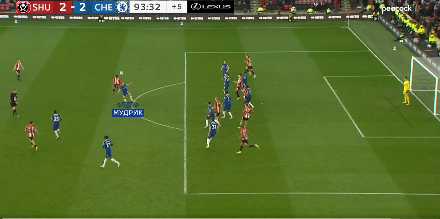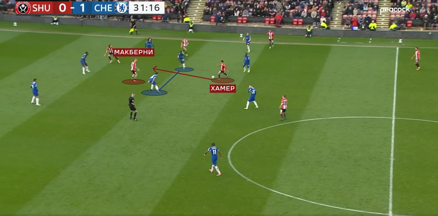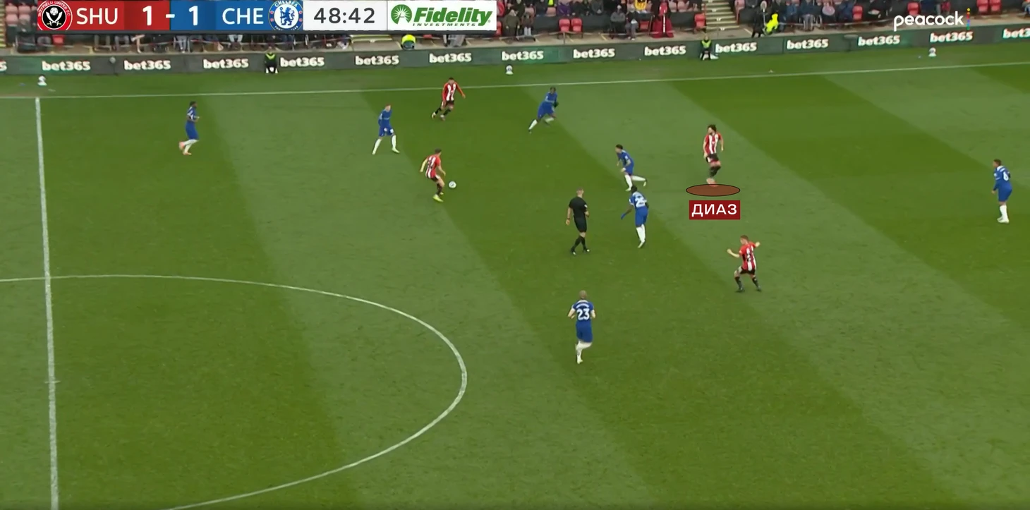 Уже в финальные 15 минут «Шеффилд» стал менее активно идти в прессинг, и поэтому стали образовываться необходимые для «Челси» зоны.