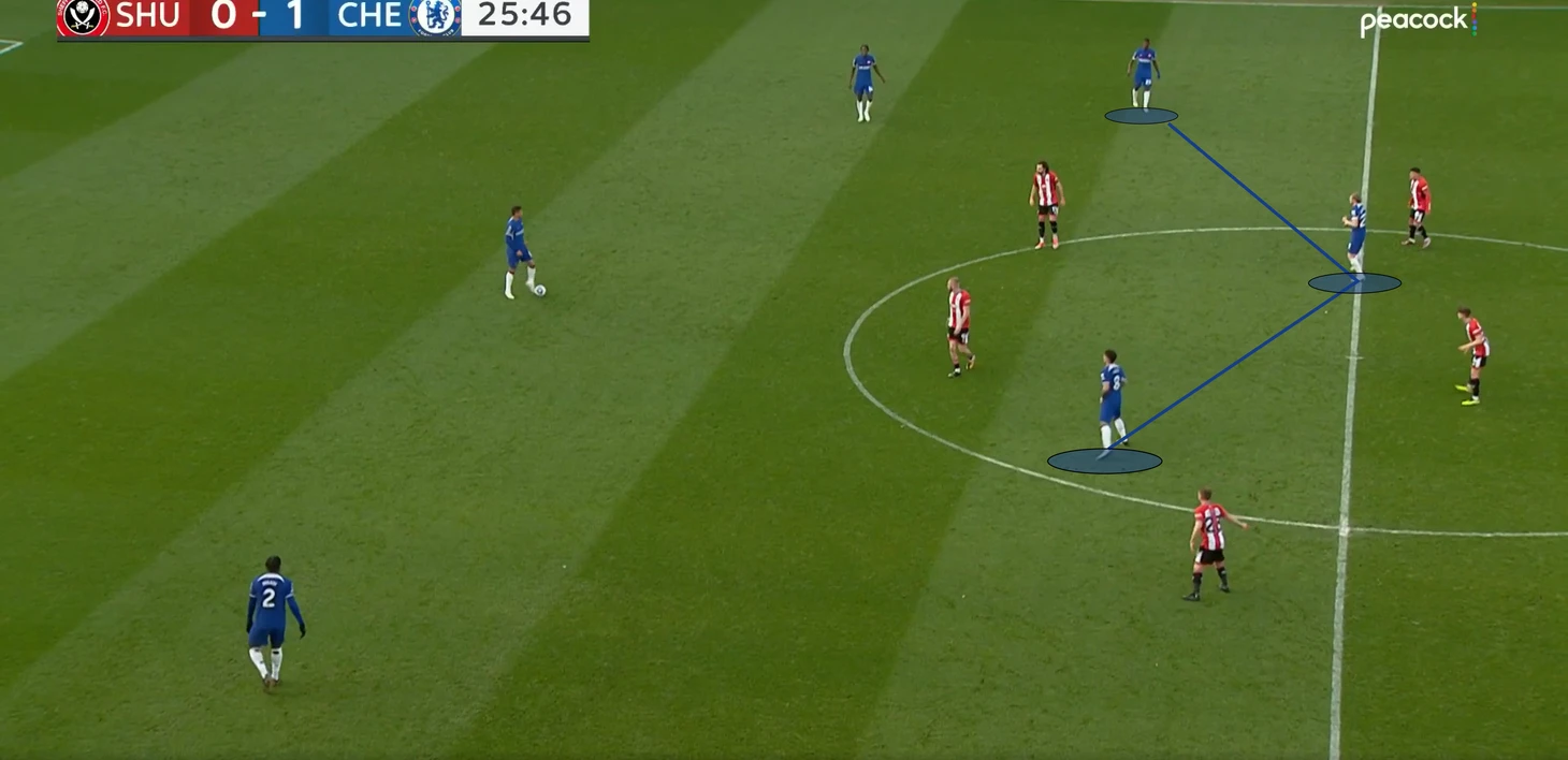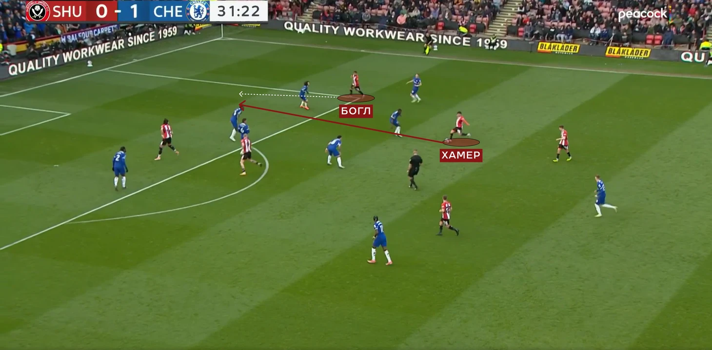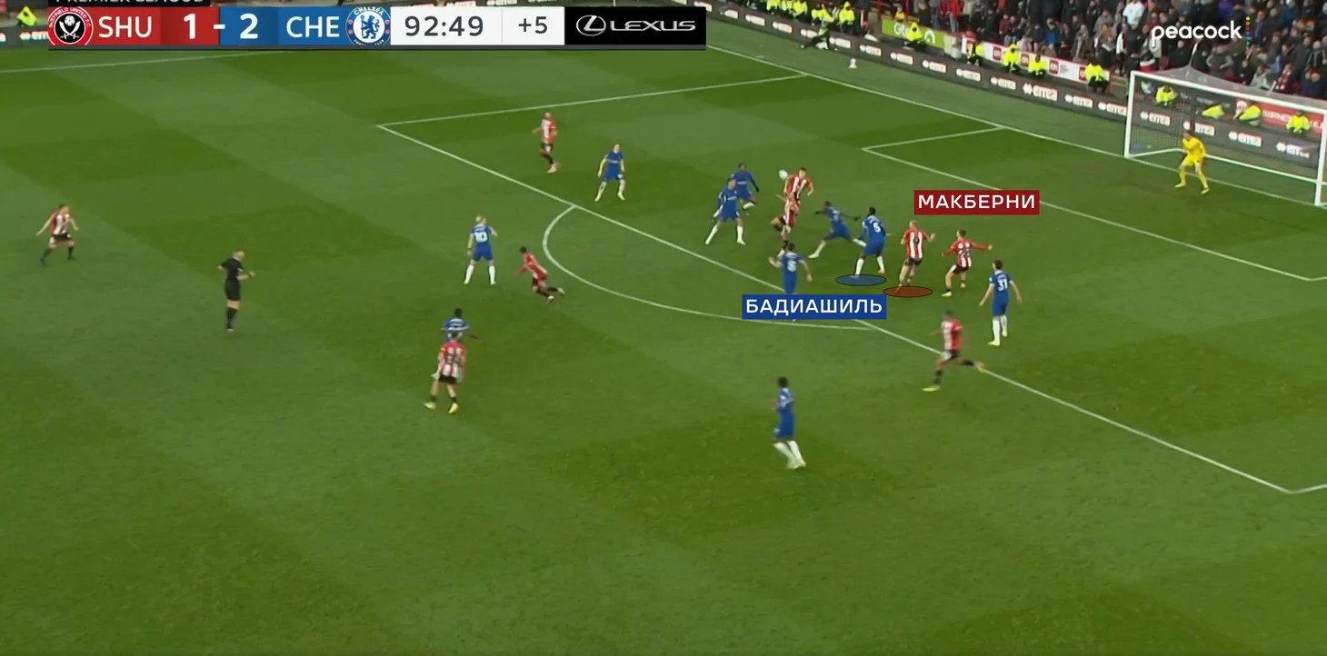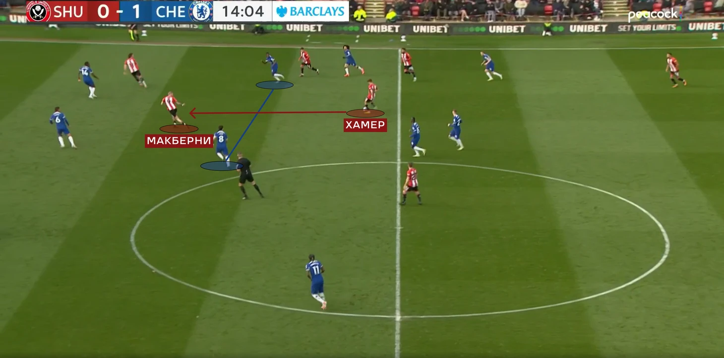 Уже в финальные 15 минут «Шеффилд» стал менее активно идти в прессинг, и поэтому стали образовываться необходимые для «Челси» зоны.