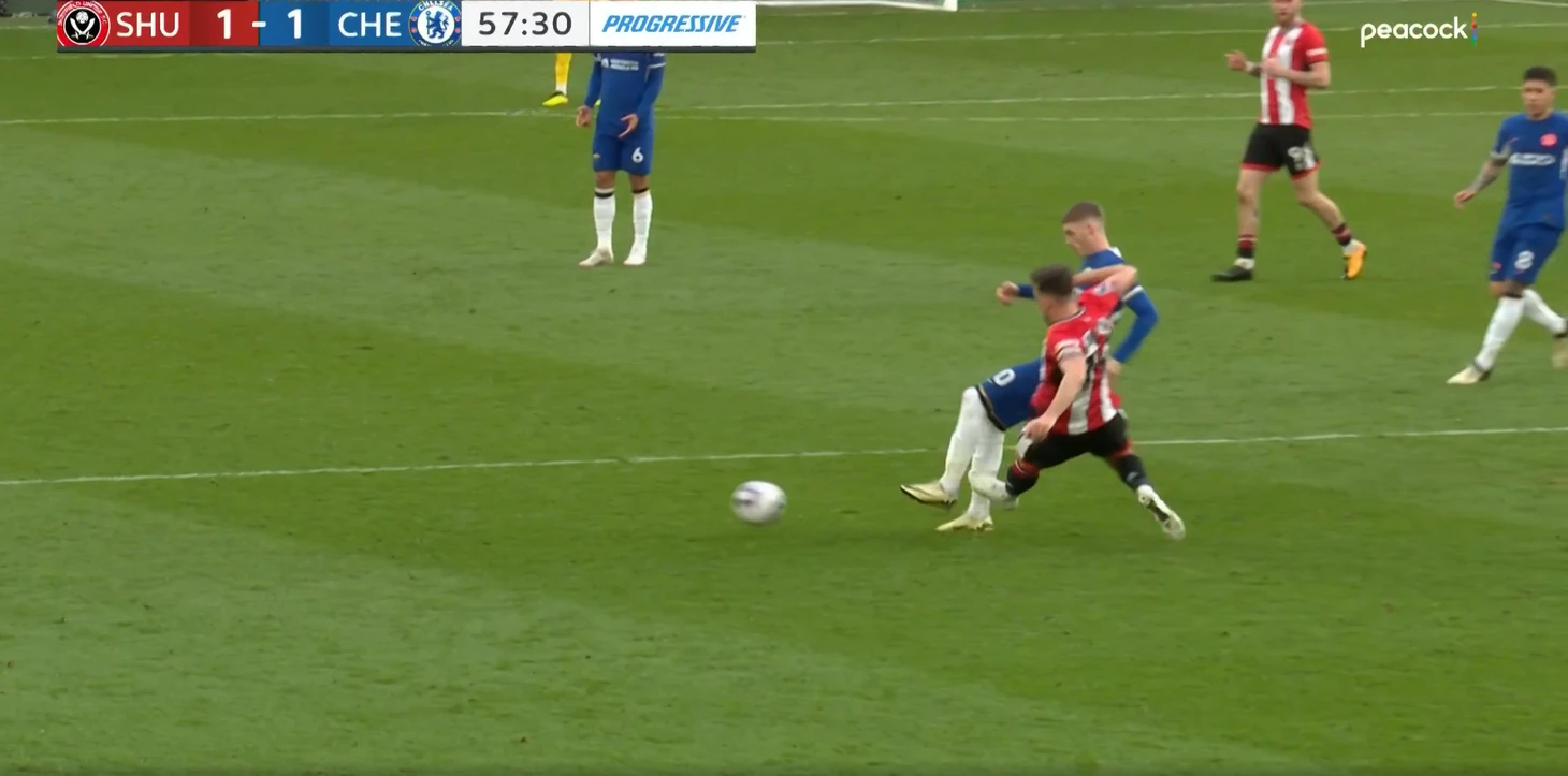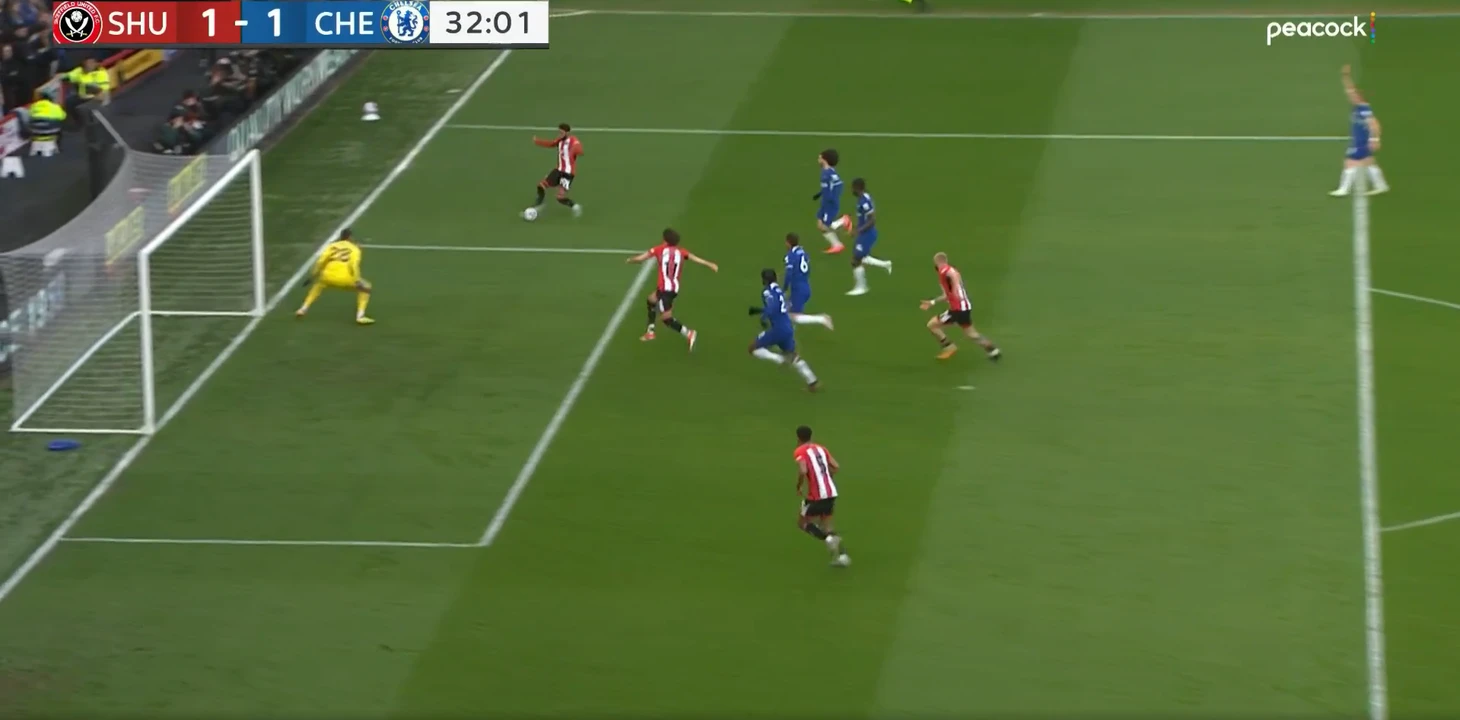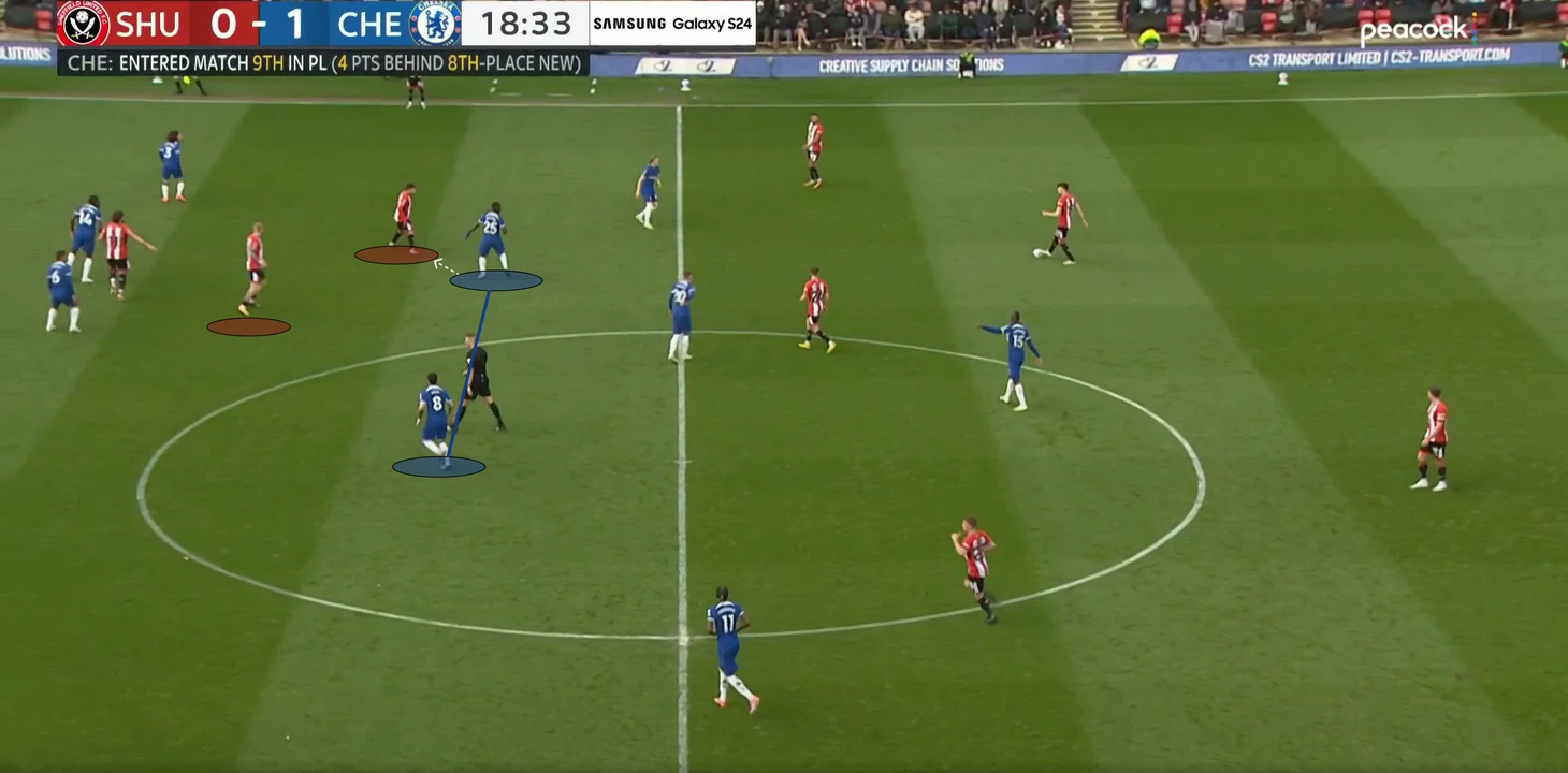«Шеффилд» активно прессинговал опорную зону гостей, «Челси» пытался решить эту проблему путем розыгрыша мяча с помощью глубокой позиции Энцо, и ухода Галлахера третьим центральным полузащитником. Получалось, мягко говоря, не слишком продуктивно.