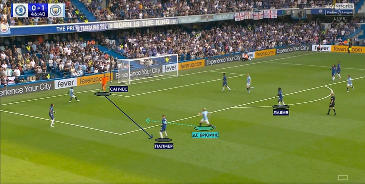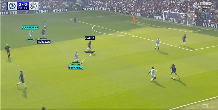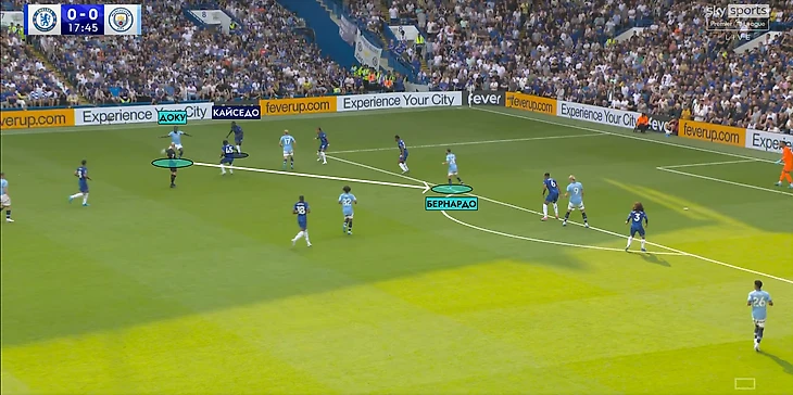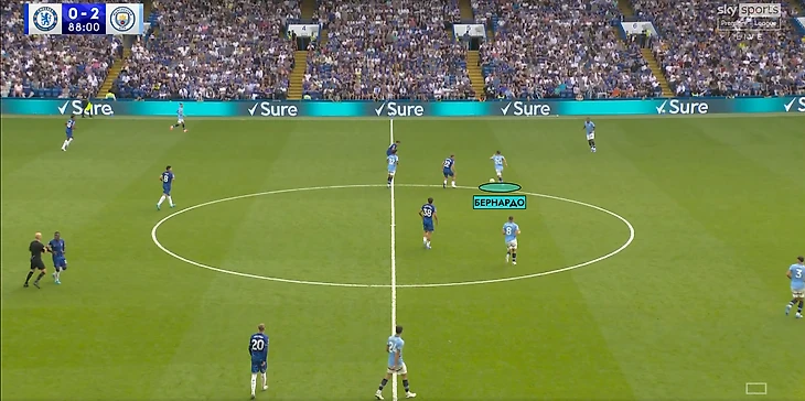Опасных попыток атаковать у «Челси» становилось все больше, но «Сити» нашел решение и этой проблеме – в опорную зону стал смещаться Бернардо Силва. Португалец все чаще предлагал себя для продвижения мяча из глубины и тем самым убил темп игры.