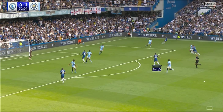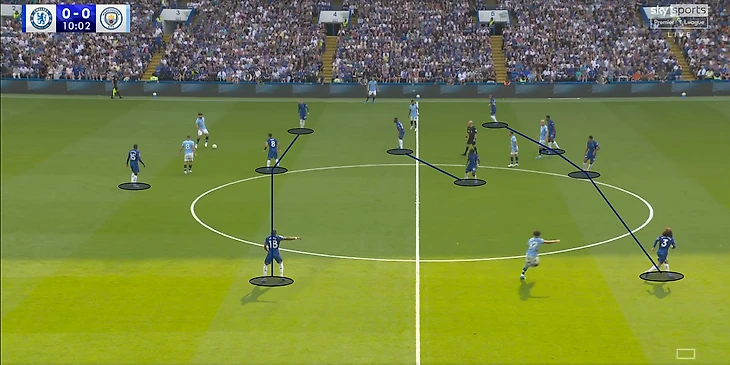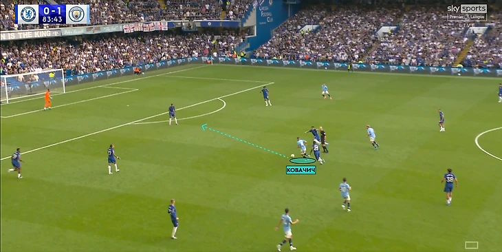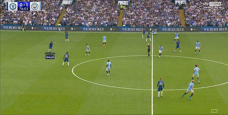 Чтобы хоть как-то сгладить ситуацию ниже опускаться приходилось Энцо, но за аргентинцем сразу следовал либо Ковачич, либо Аканджи. Благодаря перенасыщению центра поля и активному прессингу «Сити» вынуждал Санчеса играть длинными и малоэффективными передачами во фланги.