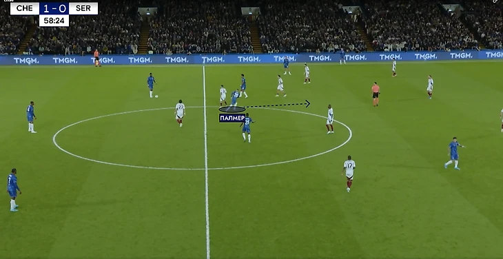 Если выход Энцо и Нони понятен, то Палмер встал на нетипичную для себя позицию ложной девятки. Причем, структурно в игре ничего не поменялось, Коул как и Марк, опускался к центру поля для розыгрыша. Интересно, насколько далеко зайдет идея с Палмером-ложной девяткой, или это единичный случай?