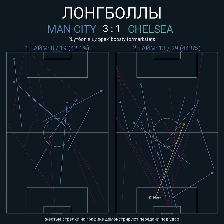 Конечно, такой ход озадачил для «Сити» начало атаки через короткий пас, но открыл возможность продолжить доминирование в игре, благодаря правильному решению – лонгболлы.