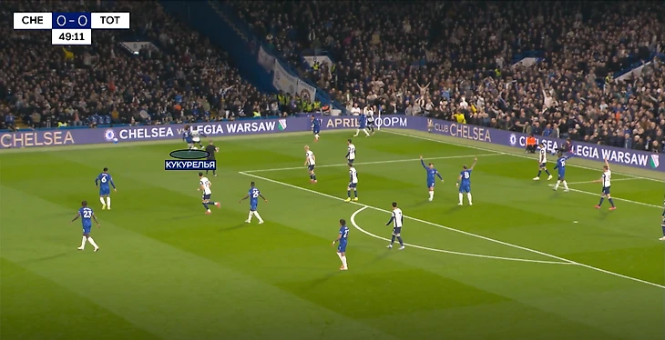 Одна деталь из прессинга у чужой штрафной пригодилась и в голевой атаке – это игра Кукурельи по Одоберу. Испанец быстро накрывает вингера «шпор», создавая для «Челси» еще одну возможность провести атаку. Спустя пару передач, Коул Палмер навесит в штрафную, и Энцо откроет счет ударом с головы.