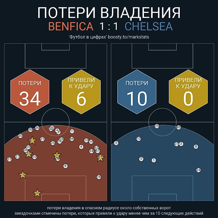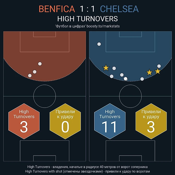 Удачная активность «Челси» выражается и в продвинутой статистике. «Бенфика» в три раза больше теряла мяч, чем подопечные Марески.
