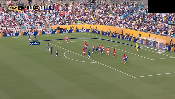 Этой игре не хватало только одного – гола в ворота «Бенфики». И как нельзя кстати, во втором тайме Рис Джеймс открыл счет прямым ударом со штрафного. Капитан воспользовался тем, что Трубин оставил угол, и филигранно положи мяч в притирку со штангой.