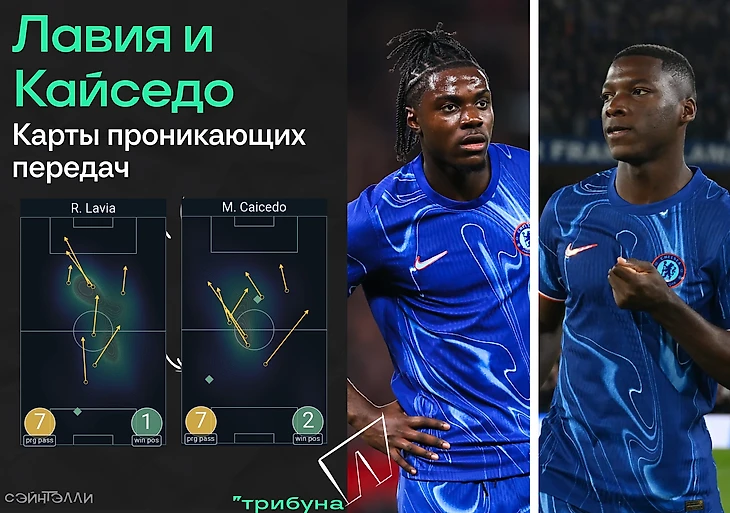 А теперь немного про голы. Во втором забитом мяче «Челси» хочется выделить Кайседо, который удачно сработал в прессинге, благодаря чему команда вышла в быструю атаку.