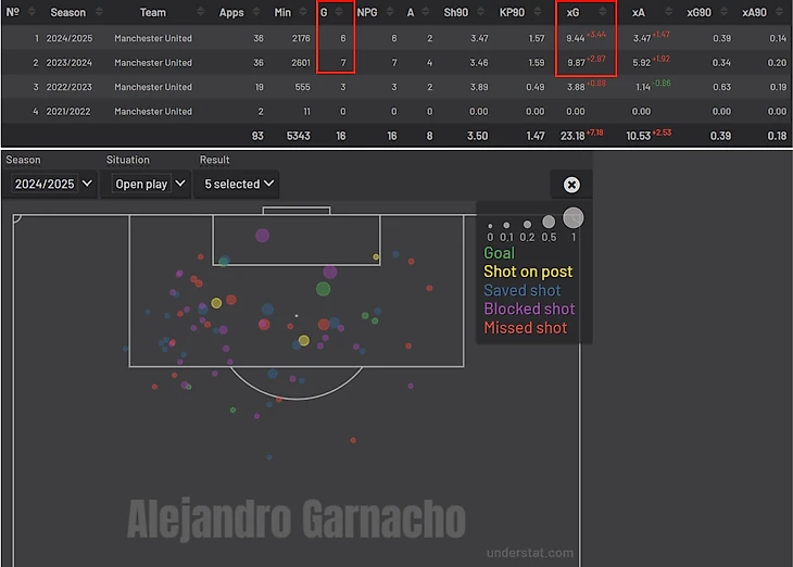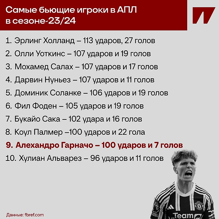 Если матч с «Эвертоном» на «Гудисоне» в сезоне-23/24 дал Гарначо футбольное признание, то февральский матч прошедшего сезона вскрыл все проблемы аргентинца в новом «МЮ». Вингер может ударить в самый неподходящий момент или выкатить мяч туда, где нет партнера.