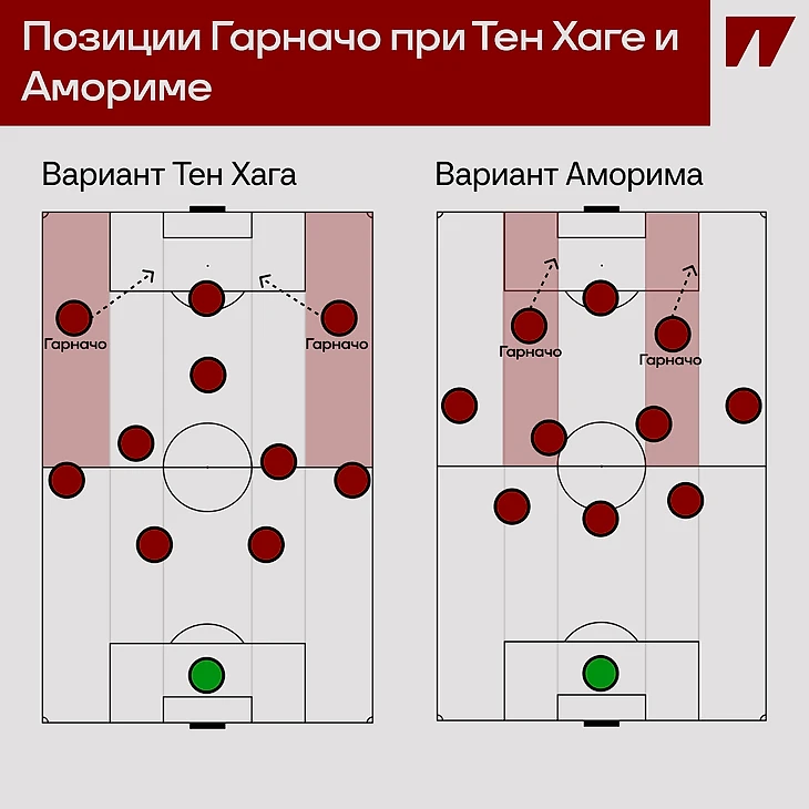 Так как у Аморима были Бруну и Маунт, способные занять позицию левого инсайда/ложного вингера, потребность к Гарначо слева сошла на нет, и его стали переводить направо.