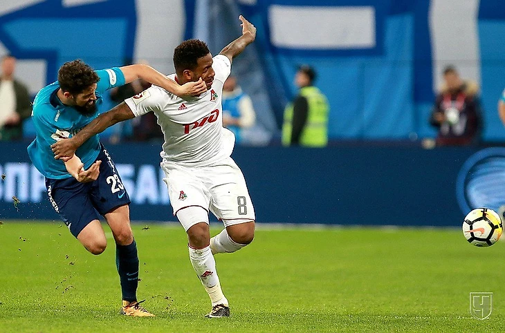 Второй тайм начался совершенно по-другому нежели первый. Гости стали больше прессинговать петербуржцев, выигрывать больше единоборств , контролировать мяч и в общем-то не дали возникнуть остроте у своих ворот. И вот на пятьдесят седьмой минуте Лысов забрал мяч у Ивановича , перевел на чужую половину поля, Где Антон Миранчук изящным пасом на Фарфана выводит того один на один с Луневым. Джефферсон спокойно обыгрывает вратаря "Зенита" и открывает счёт в матче. 1: 0 - "Локомотив" повел. Не сказать что хозяев обескуражил этот гол. Питерцы продолжали играть ровно так как им позволял соперник. И спустя несколько минут после забитого мяча "Локомотив" чуть не позволил отыграться оппоненту. Кокорин пробрасывает мяч себе на ход, тем самым легко уходя от защитников и бьёт в створ ворот. Лишь Маринато Гилерме спасает своих товарищей от гола.