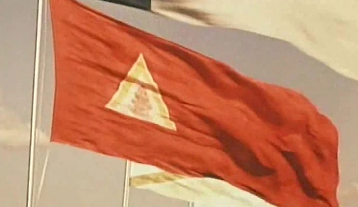 Эмблема Федерации футбола СССР имела круглую форму, как и крыша Сенатского дворца, на которой развевается государственный флаг.