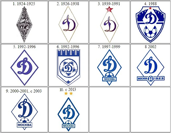 Эмблемы конца восьмидесятых и начала девяностых годов включали зубцы кремлевской стены, которые напоминают букву «М», заглавную в названии города. Мяч был изображен в виде перевернутой пентаграммы, возможно, по аналогии с орденом Красного Знамени (к вопросу о связи с силами зла). На последующем логотипе появилась полусфера, а также прямоугольник со словом «Москва», похожий на соответствующие дорожные знаки. Естественно, их видел каждый, кто въезжал в город.