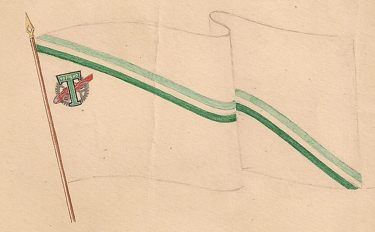 На эмблеме семидесятых годов появилось крылатое колесо, аналогичное кружкам под куполом. Они выглядят овальными, если смотреть под углом, в свою очередь, левая сторона "буквы" кажется тоньше правой. Крылья похожи на гостевые трибуны возле Мавзолея, которые раньше были не гранитными, а железобетонными, что роднило ступеньки со шпалами. Лесенка может выглядеть двояким образом, опять же в зависимости от ракурса. Возможно, автором логотипа был министр путей сообщения Борис Бещев, присутствовавший там при проведении парадов, и, между прочим, самостоятельно разрабатывавший эскизы формы.