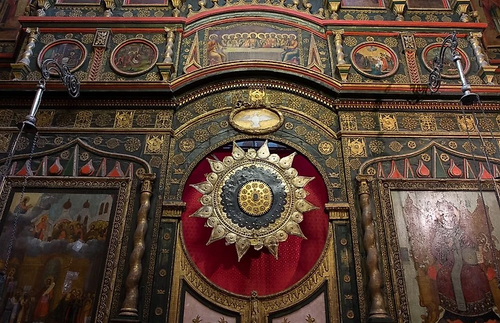 Два купола из четырех заметно больше - это Юпитер и Сатурн; Иоганн Кеплер полагал, что их соединение и было Вифлеемской звездой. Примечательно, что Екатерина II приобрела и опубликовала архив его рукописей. В свою очередь, Уран с Нептуном были открыты благодаря передвижению относительно звезд. Орбиту первого вычислил петербуржский астроном Андрей Лексель, а второй наблюдал казанский ученый Иван Симонов вскоре после обнаружения. Самая маленькая главка - Меркурий как наименьшая планета, соответственно, ближайшая к ней - соседняя Венера.