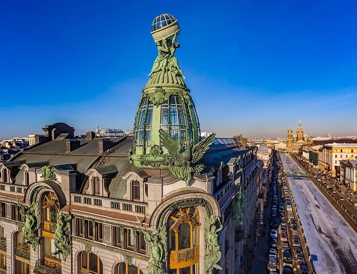 Центральный купол "рифмуется" с глобусом на башне «Дома книги».