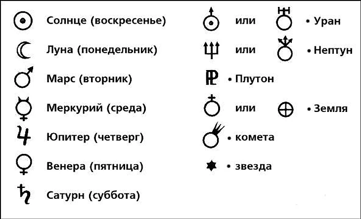 Две наиболее массивных главы можно сопоставить с газовыми гигантами - самыми большими планетами. Таким образом, Юпитер - красно-белый купол, а Сатурн - желто-зеленый, исходя из их приблизительного вида. Следующие за ними ледяные гиганты Уран и Нептун были открыты в XVIII - XIX веках, не говоря уже о Плутоне (завершении колокольни), что заставляет усомниться в осознанном намерении зодчих заложить соответствующую модель. В то же время, голубая планета Земля насчитывает ровно 24 часовых пояса; этот орнамент сформировался в результате реставрации, связанной с московской Олимпиадой 1980 года, как бы намекая на планетарный масштаб соревнований и вместе с тем отсылая к земному шару на советском гербе. Закручивание сделано противоположным обратному вращению Венеры, которое обнаружили отечественные ученые во главе с Владимиром Котельниковым. Кроме того, в шестидесятые и семидесятые годы для изучения этой планеты было отправлено более десятка советских автоматических станций. Меркурий - еще один сосед Венеры, а Марс - Земли, как и Луна, расположенная совсем рядом с ней.