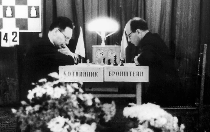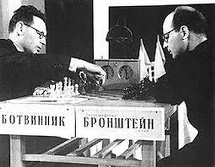 Новоиспеченный претендент – человек нелегкой судьбы. В конце 30-х его отец угодил под маховик сталинских репрессий. Для Давида это не только личная трагедия. Как «сыну врага народа» ему закрыт путь поступления в университет, а значит, ставится жирный крест на мечтах о карьере математика. К счастью, в шахматах социальный лифт работает безотказно, невзирая на политический климат. Если блондин играет сильнее брюнета, как говаривал Остап Бендер, значит, так тому и быть. В послевоенные годы молодой гроссмейстер находится на пике своего могущества и играет сильнее многих. В 1945-м на 14-м чемпионате СССР он был 3-м. Тогда же дебютировал в сборной страны, принеся 100% очков на 10-й доске в знаменитом радиоматче с американцами. После блистательной победы в межзональном, он одну за другой получает две золотые медали чемпиона СССР. Правда, обе в соавторстве. В первом случае лавры приходится делить с Котовым, во втором - со Смысловым. Его шахматы способны восхищать. Он именно играет! В партиях Бронштейна нет сухости ради результата и эффектов ради эффектов. В сложной тактической борьбе, когда от обилия вариантов идет кругом голова, а фигуры начинают прыгать по доске, он чувствует себя особенно уверенно. По стилю игры, по своему шахматному воспитанию Бронштейн явный антипод Ботвинника, что только подогревает интерес к предстоящей схватке. Еще один лейтмотив – спортивная форма Чемпиона. Точнее, полное отсутствие информации о ней. Сразу после победы в матч-турнире Ботвинник с головой уходит в работу над докторской диссертацией. За последние три года им не сыграно ни одной турнирной партии. Перерыв внушительный, это понимает и сам Чемпион, начинающий подготовку сразу, как только становится известно имя соперника. Доскональным образом изучены все партии Бронштейна последних лет, восполнены дебютные пробелы, намечена стратегия борьбы. Главная цель – не давать сопернику получать позиции с инициативой и при первой возможности упрощать игру. О том, насколько это трудно, ясное представление дадут уже первые партии. Пока же Ботвинник, на пару с верным секундантом Рагозиным в обстановке строгой секретности, стремится наверстать упущенное.