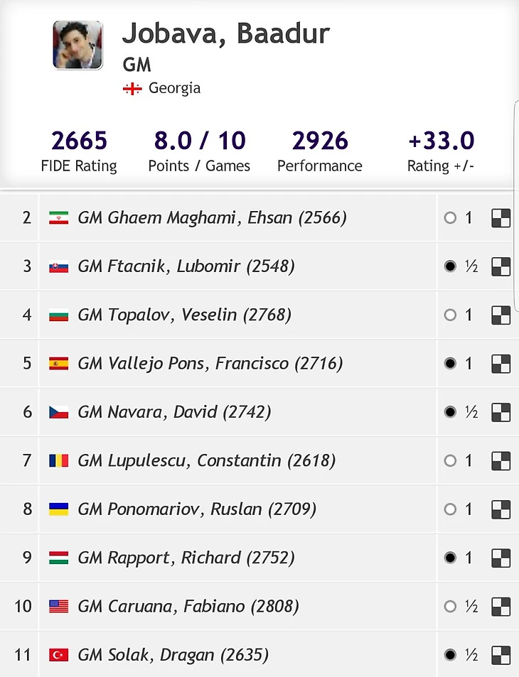 12:59 Главным фактором успеха сборной Грузии оказался лидер сборной - Баадур Джобава. 8 из 10 набрал на первой доске!