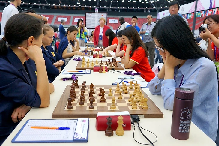 15:03 Всё! Саша согласилась на ничью. Россия проигрывает Китаю - 1,5 на 2,5 и улетает за чертой призеров. Китай занимает первое место, Украина и Польша будут считать коэффициенты еще за серебрянную и бронзовую медали.
