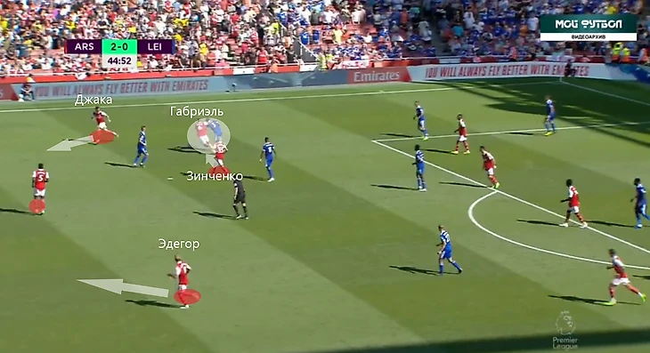 Когда Зинченко уходит в центр, Джака может стать левым защитником, а Мартинелли открываться по полуфлангу, либо становиться вторым нападающим;