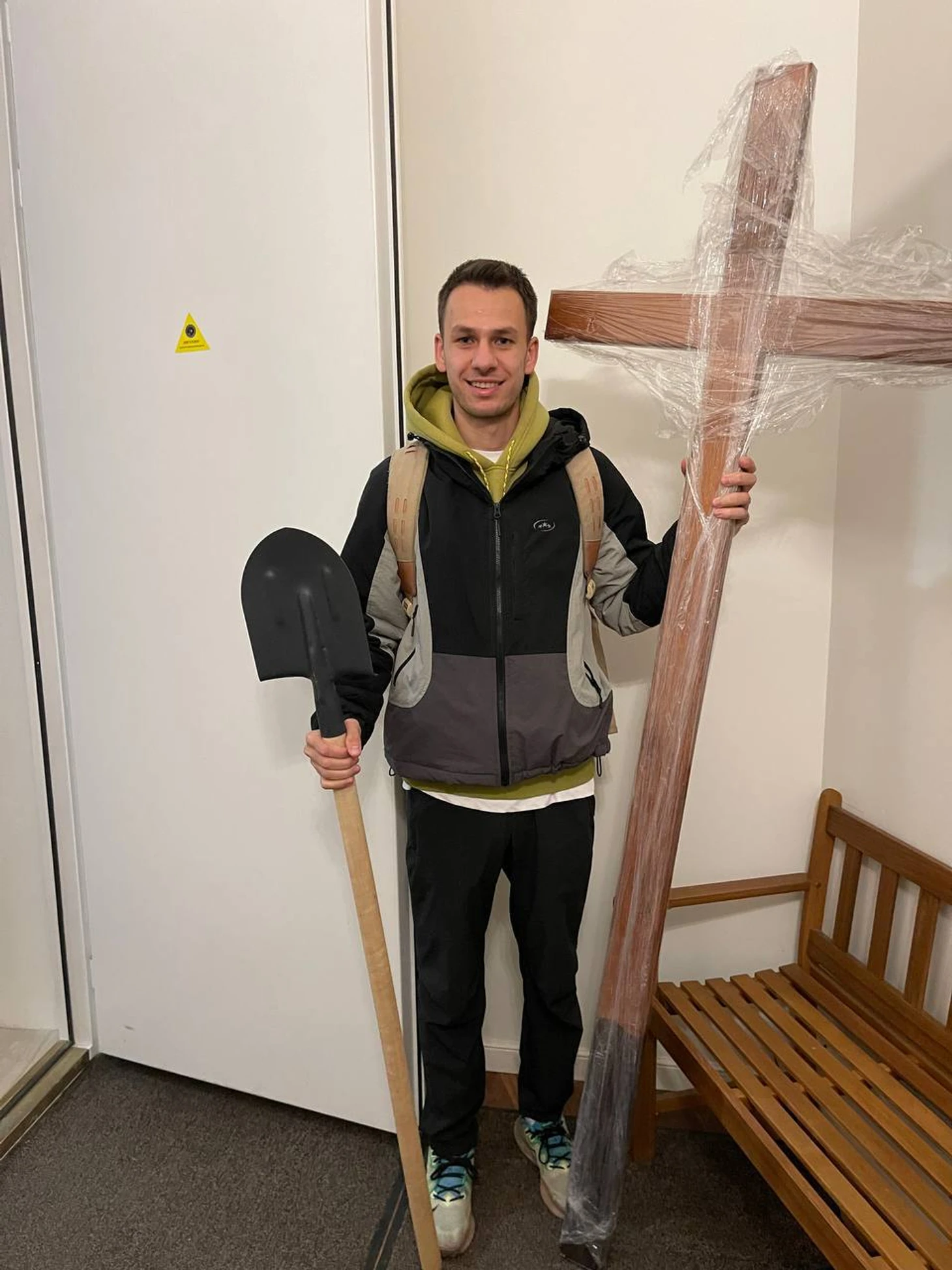 Представьте картину: по центру города идет улыбчивый молодой человек с кладбищенским крестом на плече и лопатой в руке. Это странно со стороны, очень забавно и сюрреалистично изнутри. Столько взглядов не ловил даже тогда, когда шел с двойником Басты, которого мы подготовили для съемки промо «Зачем нам Баста?».