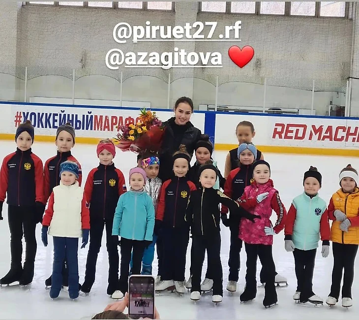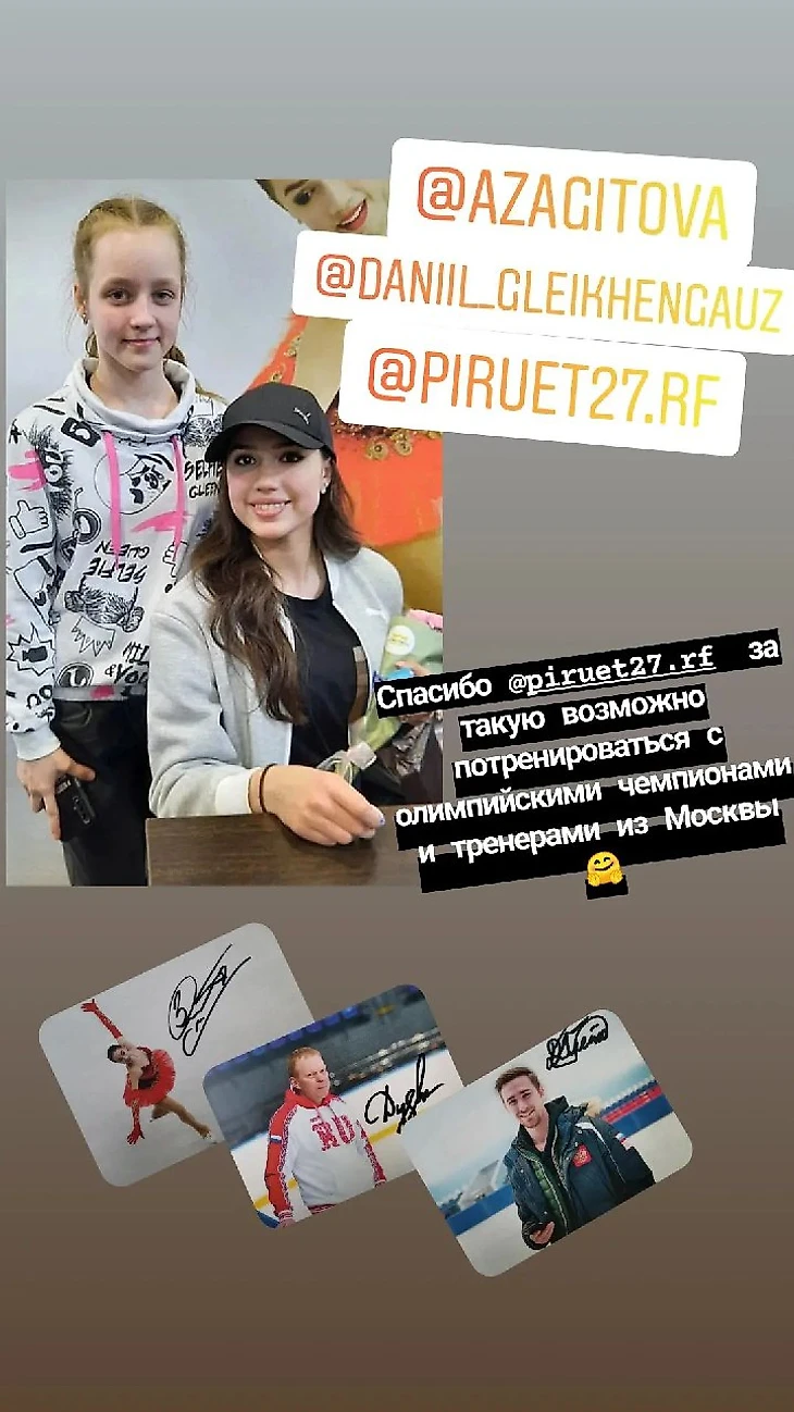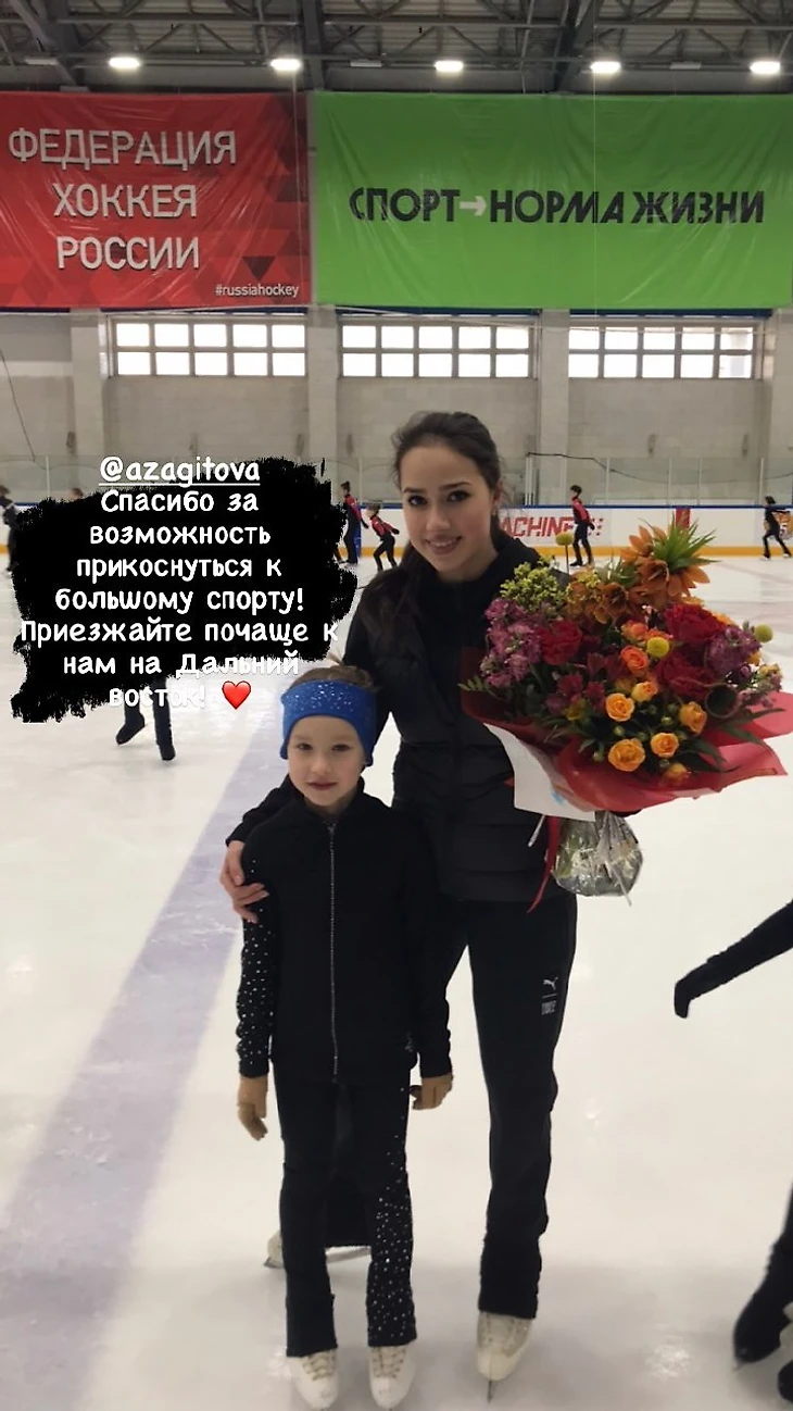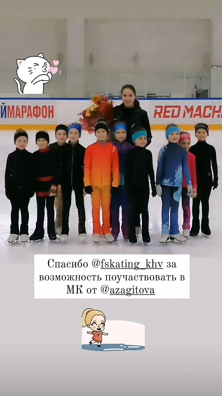 !Наши хабаровские звездочки на мастер-классе Алины Загитовой. Я отметила подход к делу без потери времени. Алина говорила с детьми на равных, спокойно, сухо, строго, никаких посторонних разговоров, все эмоции оставила на фотосессию. Видна приученность работать каждую минуту на льду. Екатерина Гаврилова" https://vk.com/gavrilova_sila?w=wall711968214_27%2Fall