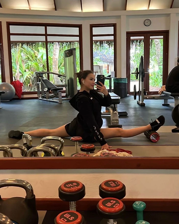 Не забывает Алина и о тренировках! Шикарный шпагат!