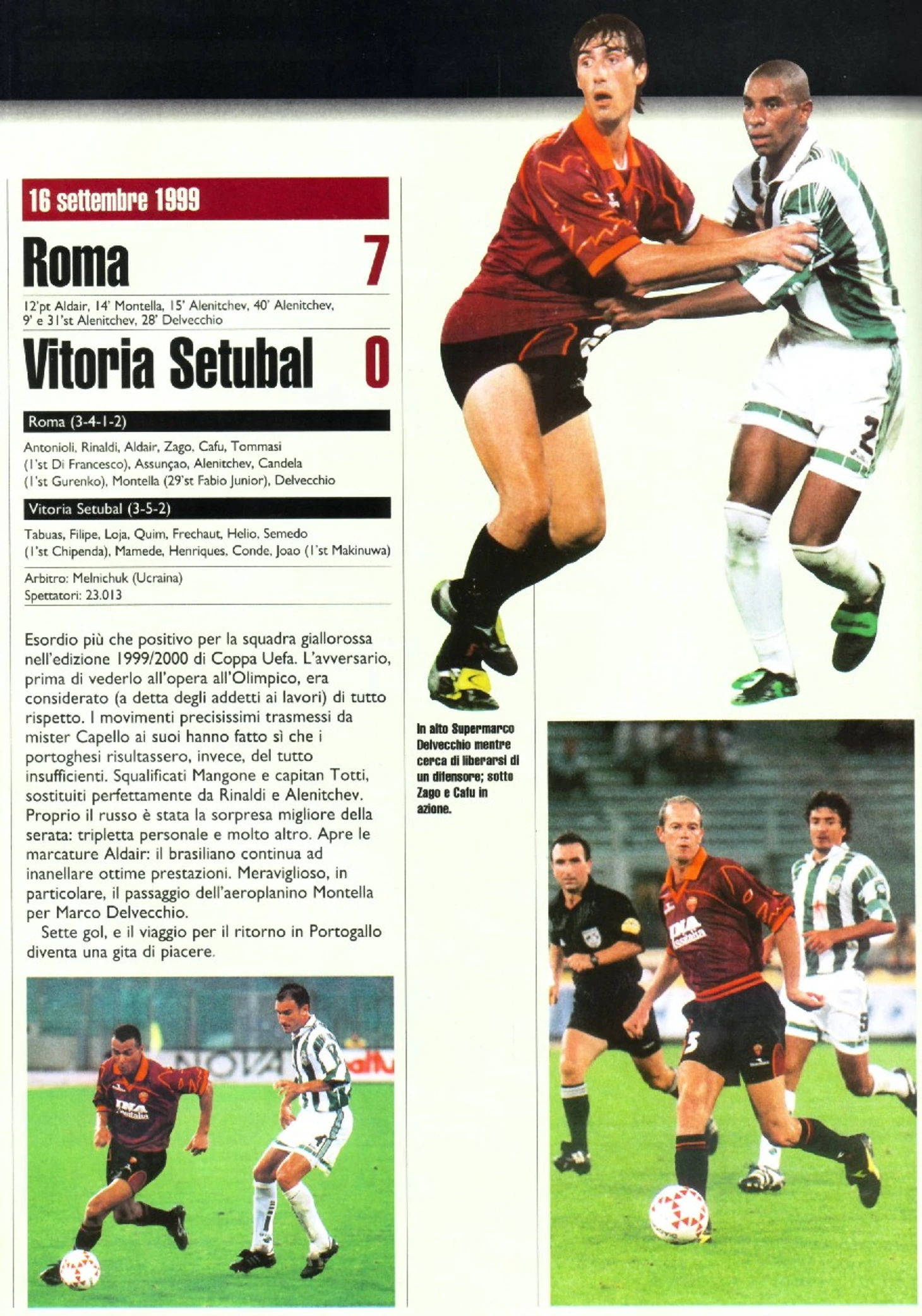 16 сентября 1999 года на «Стадио Олимпико» в Риме при 23 013 зрителях итальянская «Рома»  в рамках 1/64 финала Кубка УЕФА полностью переиграла португальскую «Виторию» из Сетубала со счетом 7:0. Самое активное участие в разгроме принял Дмитрий Аленичев.