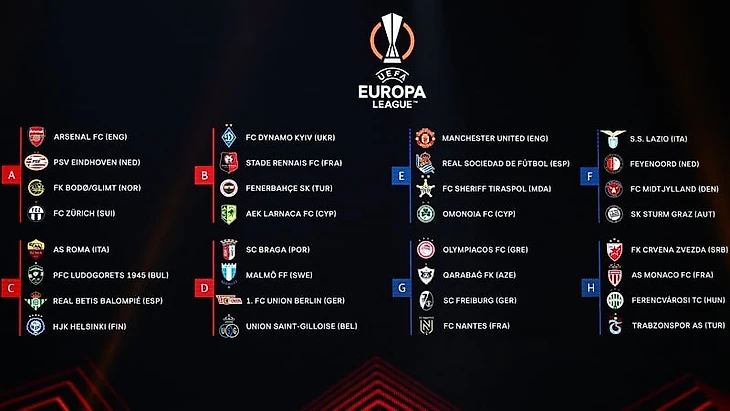 "Манчестер Юнайтед" примет "Реал Сосьедад" в Лиге Европы, а английский "Арсенал" встретится с "PSV Eindhoven" на групповом этапе после жеребьевки, состоявшейся сегодня днем.