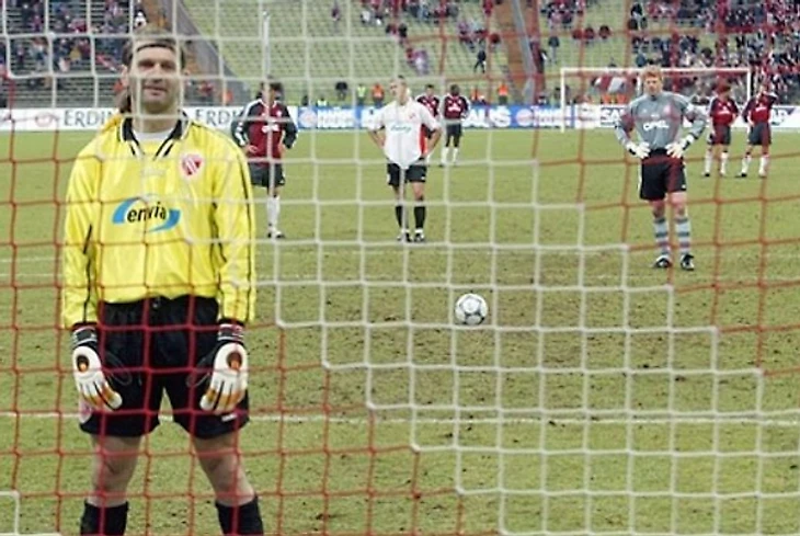 2002 год. «Бавария» громит «Энерги» 6:0, а Оливер Кан собирается пробить пенальти и впервые в карьере стать автором забитого мяча. Получилось настолько плохо, что вратарь соперника Томислав Пиплица хохотал до конца игры.