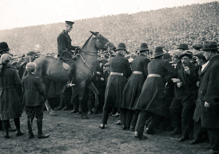 1923 год. Полиция утрамбовывает болельщиков на полуфинале Кубка Англии «Шеффилд Юнайтед» – «Болтон».