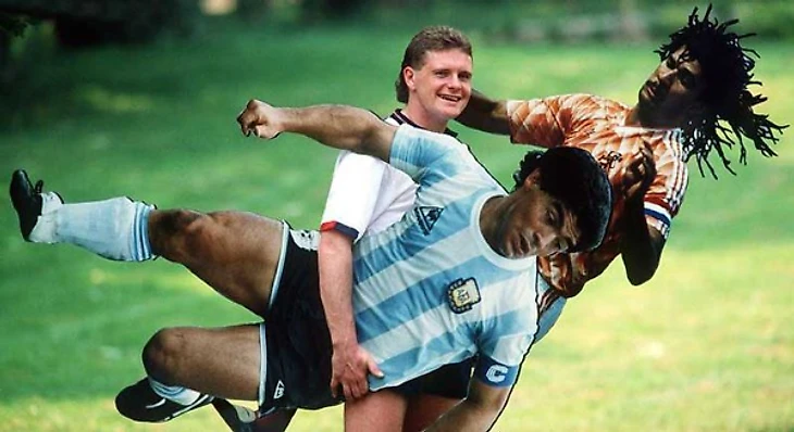 Пол Гаскойн и его картонные друзья – Марадона и Гуллит.