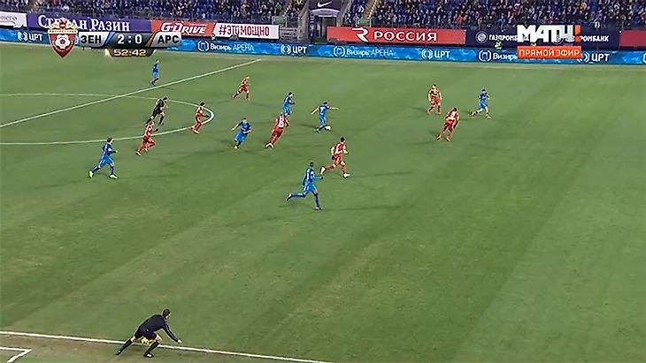 Первый – и совершенно неопасный – удар в створ ворот Акинфеева случился на 56-й минуте. Вряд ли Рахимов собирался действовать по конспектам Гвардиолы в ответном матче с «Монако». И в первом, и во втором тайме его команда хотела забивать, но упиралась в красно-синюю стену. Лучше всего о почти безупречной игре ЦСКА перед своими воротами вам расскажет этот скриншот.