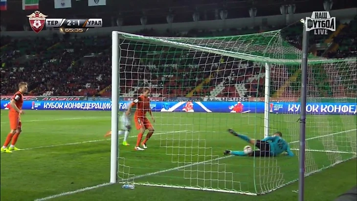 63-я минута. Мбенг в той же компании бьет головой в упор с линии вратарской. 21-летний вратарь-дебютант Андрей Тимофеев падает в ворота вместе с мячом – 2:1.