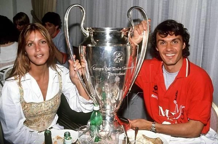 Паоло Мальдини делит кубок Лиги чемпионов с женой – Адрианной Фоссой.