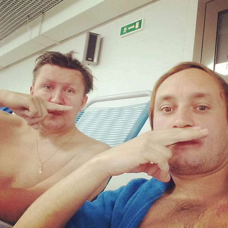 «Кумиры современности после просмотра матча в сауне сборной Дзюбодэкович и Кокориносорокин. Фоткаемся пока наши девочки плавают без купальников. Привет Черчесову епта!!!»