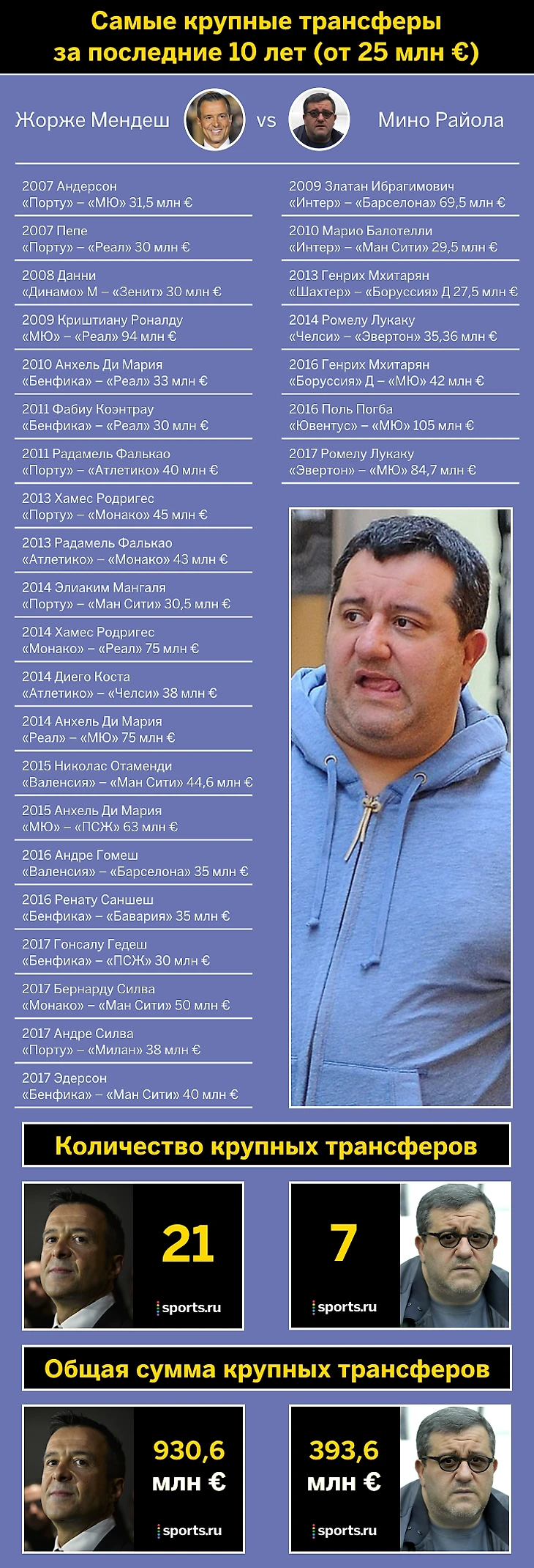 Мино Райола всего за год превратился чуть ли не в самого мощного агента мира, который проворачивает очень громкие сделки. Год назад он сделал Поля Погба самым дорогим футболистом мира, устроил Златана Ибрагимовича в «МЮ» и перевез туда же Генриха Мхитаряна, а в этом – перетащил во все тот же «Юнайтед» Ромелу Лукаку (за 75 миллионов фунтов).