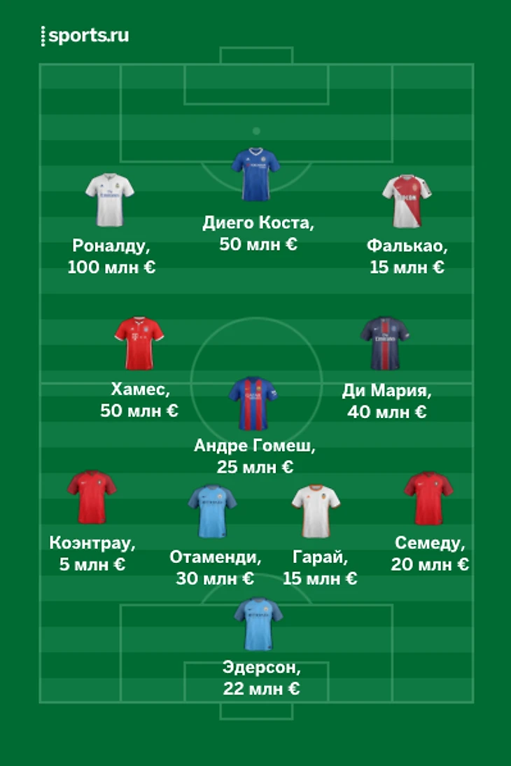 Запас: Серхио Ромеро («МЮ», 6 млн €), Грегори ван дер Виль («Фенербахче», 3 млн €), Владимир Вайсс («Аль-Гарафа», 3 млн €), Джакомо Бонавентура («Милан», 24 млн €), Джастин Клюйверт («Аякс», 3 млн €), М’Байе Ньянг («Милан», 15 млн €), Томаш Нецид («Бурсаспор», 2,25 млн €).