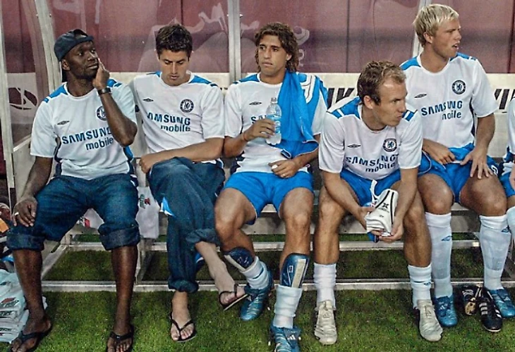 Бомбическая скамейка «Челси»: Макелеле, Дель Орно, Креспо, Роббен и Гудьонсен.